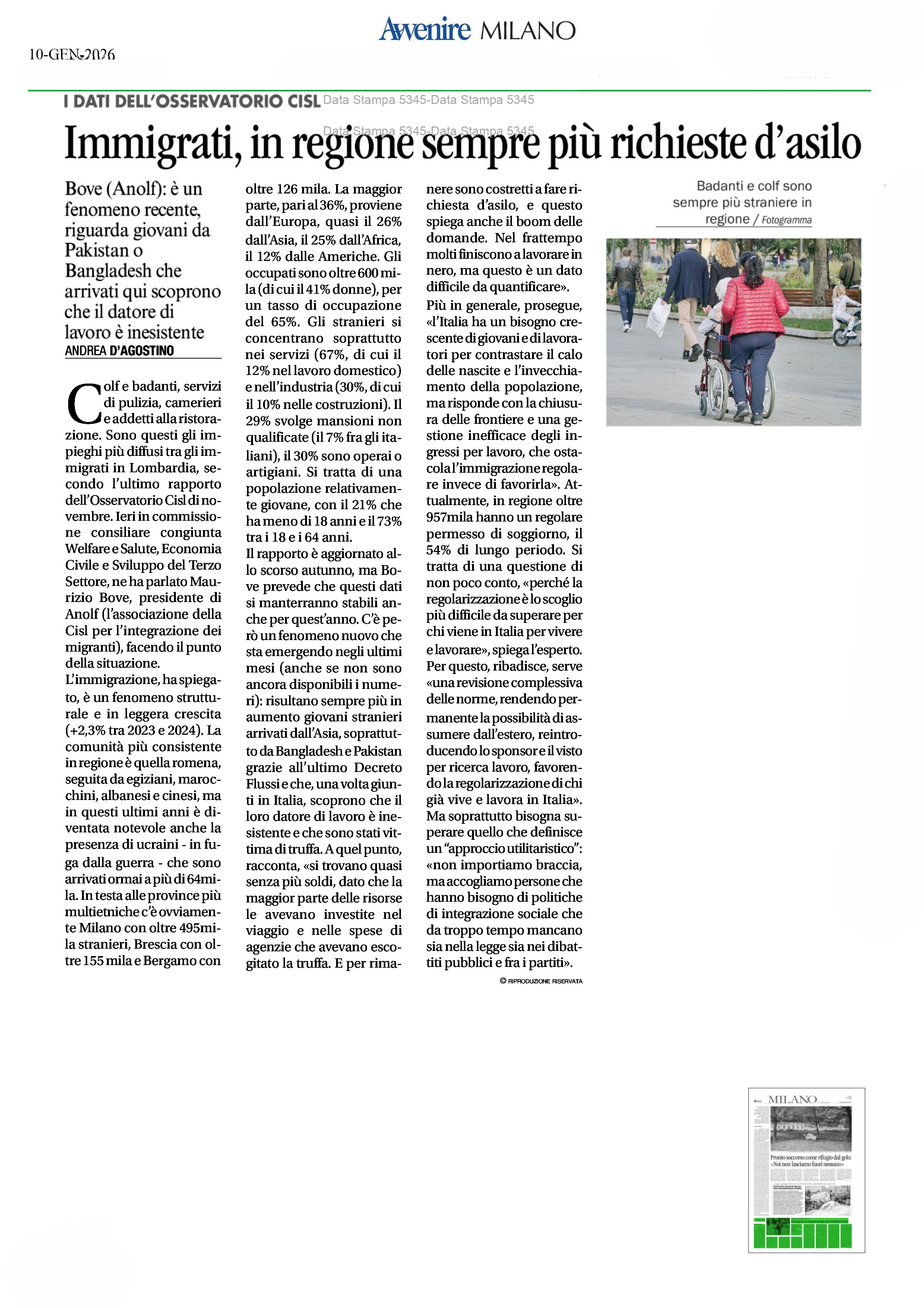 Bove, Anolf Milano e Lombardia: "Non importiamo braccia, ma persone che hanno bisogno di politiche di integrazione sociale e lavorativa".
