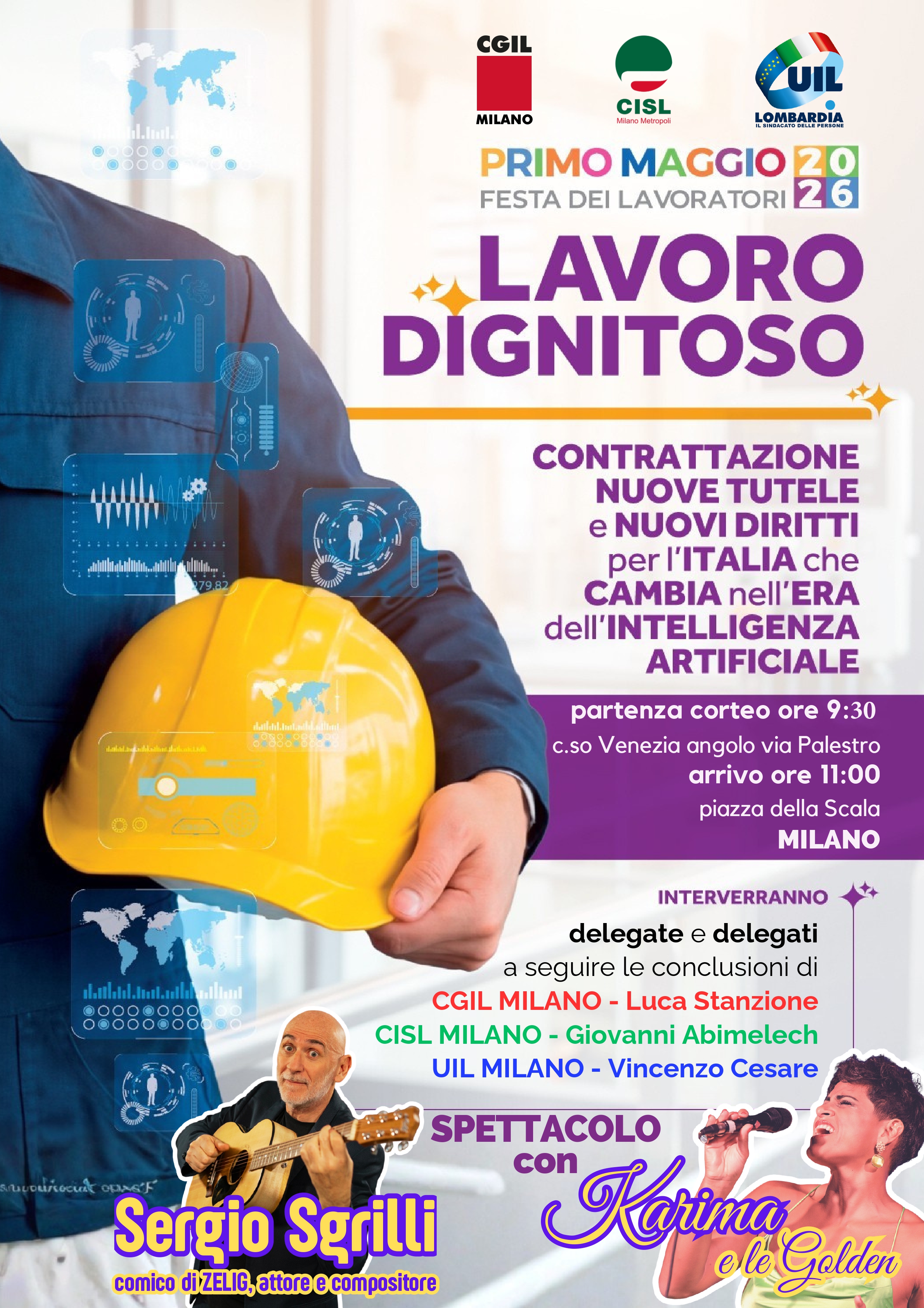 A Milano, alle ore 9.30, in corso Venezia (altezza via Palestro), partirà un corteo che proseguirà verso piazza San Babila, corso Matteotti, piazza Meda, via Case Rotte per arrivare in piazza della Scala, dove si terranno gli interventi dei delegati e delle delegate e dei segretari di Cgil, Cisl e Uil Luca Stanzione, Giovanni Abimelech, Vincenzo Cesare.