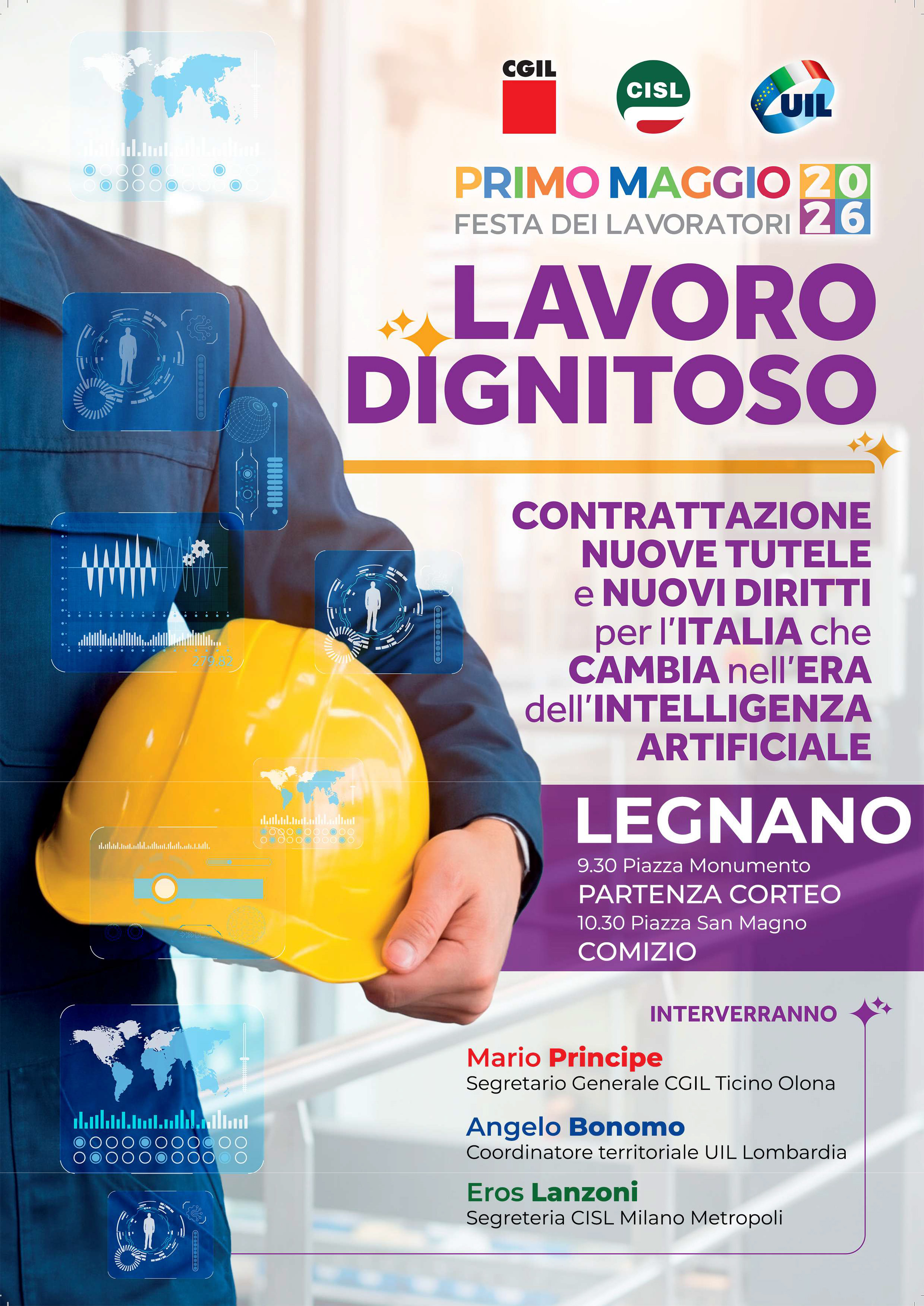 La ricorrenza verrà celebrata anche a Legnano, dove si terrà un corteo (ore 9.30) da piazza Monumento a piazza San Magno. Qui interverranno i segretari di Cgil, Cisl e Uil Mario Principe, Eros Lanzoni, Angelo Bonomo. La festa proseguirà al Teatro Tirinnanzi dove sono in programma un concerto musicale (ore 14.30) e uno spettacolo (ore 21) con il comico Alberto Patrucco.