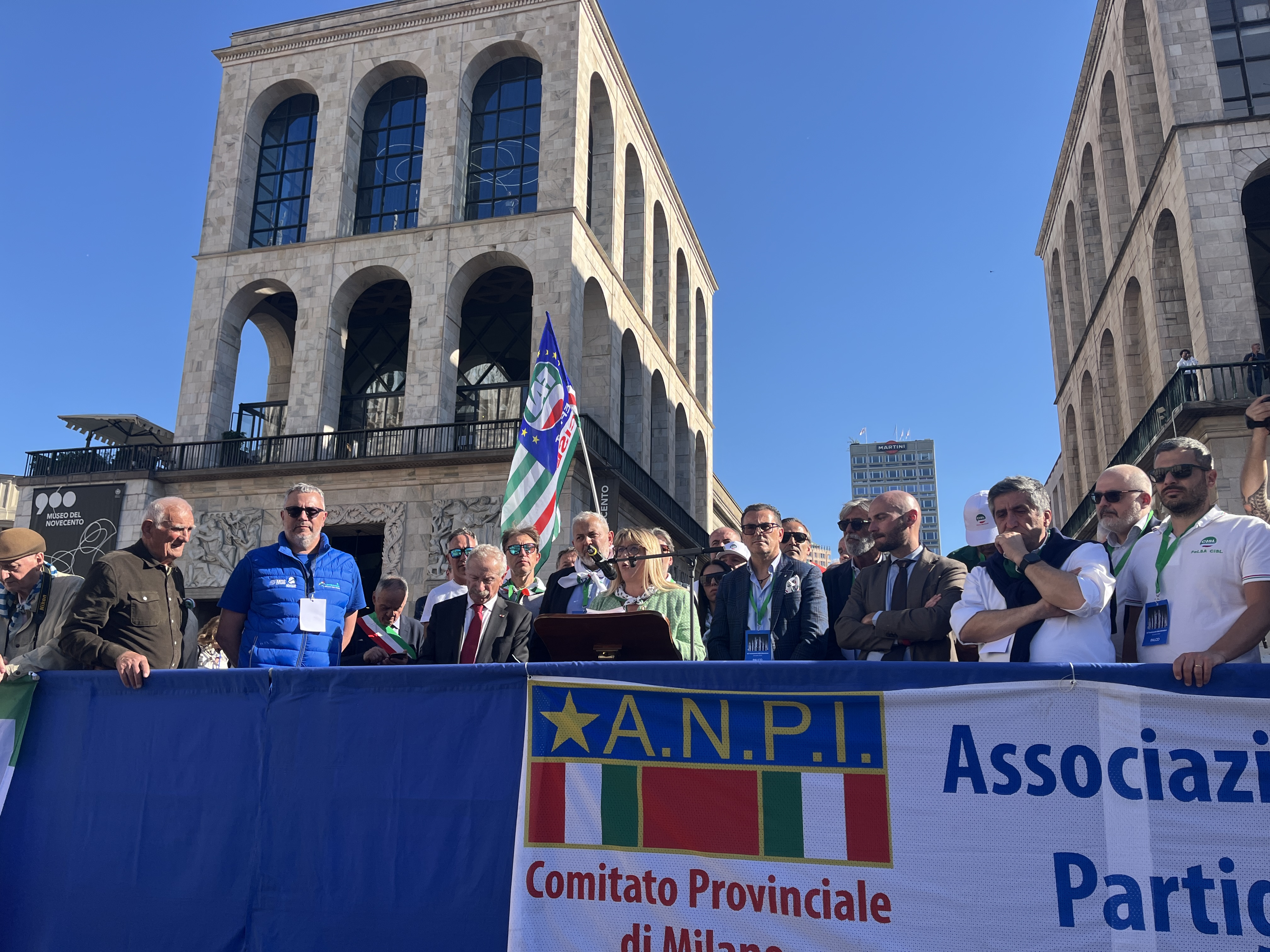 La leader Cisl sul palco di piazza Duomo: "La libertà va difesa, la democrazia praticata, la pace costruita, il lavoro rimesso al centro".